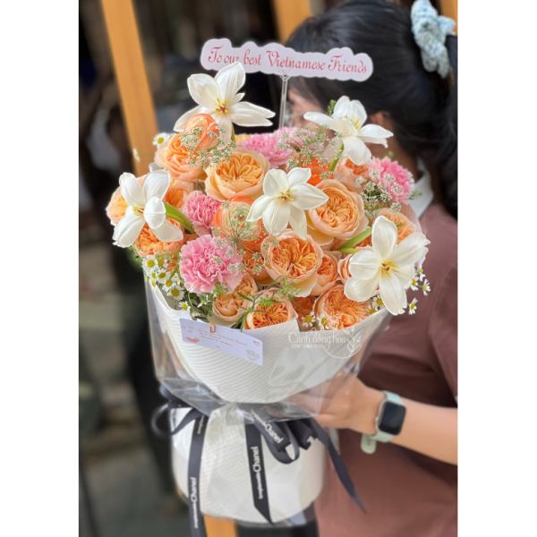 Bó hoa mang theo sự ấm áp vừa đủ, thích hợp để gửi tặng trong những ngày muốn yêu thương được nói ra thật nhẹ