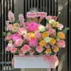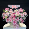Giỏ Hoa Tone Cam – Chào Đón Một Ngày Mới. Màu cam tươi sáng là điểm nhấn chính, đem lại cảm giác ấm áp và năng động như ánh nắng mặt trời. Bên cạnh đó, các cành hoa tone cam được phối hợp với màu hồng rực rỡ, tạo nên một sự tương phản đầy cuốn hút, như là cảm giác của ánh nắng chiếu sáng trên những đám mây.