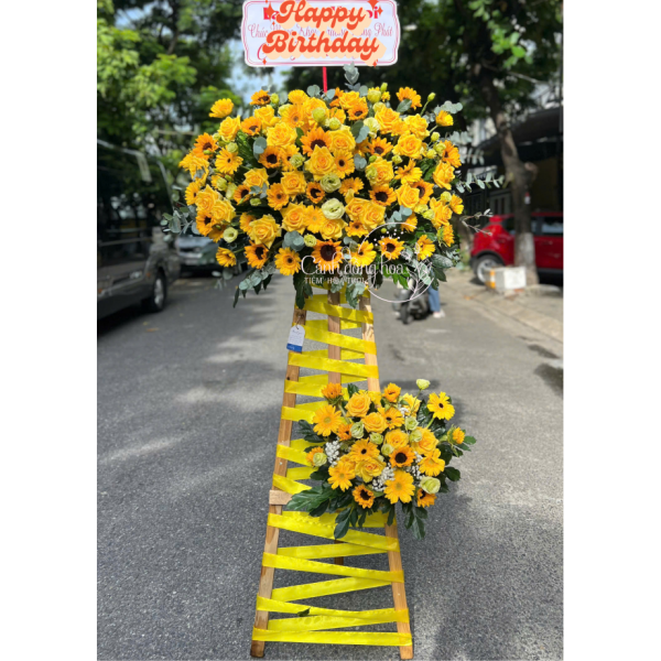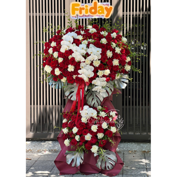 Kệ hoa khai trương tone đỏ mang ý nghĩa của sự tôn trọng và sự tỏa sáng. Bằng cách tặng kệ hoa chúc mừng này, bạn có thể thể hiện lòng kính trọng và sự đánh giá cao đối với người nhận.
