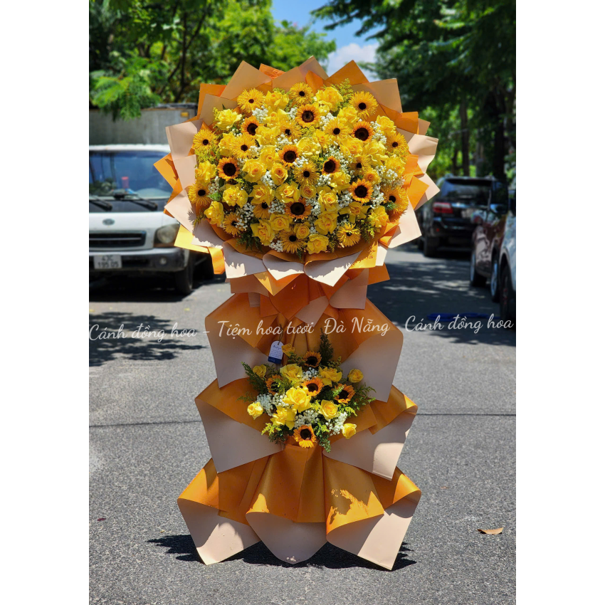 Kệ hoa khai trương tone vàng đầy tinh tế