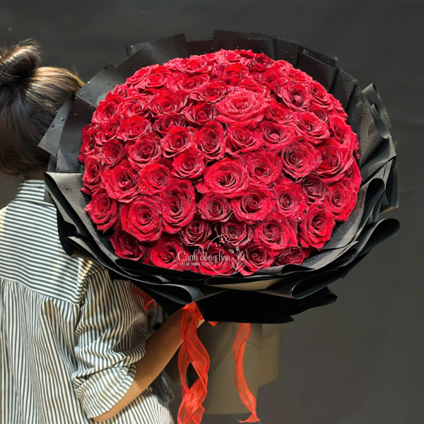 Bó hồng đỏ rực rỡ như khoảnh khắc nắng bất chợt hé qua chân mây, vừa ấm áp vừa đầy mê hoặc. Từng bông hồng bung nở kiêu sa, sắc đỏ sâu gợi cảm giác nồng nàn nhưng không phô trương. “Nắng Dưới Chân Mây” là sự giao hòa giữa vẻ đẹp rực sáng và nét dịu dàng của cảm xúc – món quà hoàn hảo để gửi đi những yêu thương chân thành, lời chúc tốt đẹp hoặc đơn giản là một chút ấm áp dành cho người bạn trân quý.