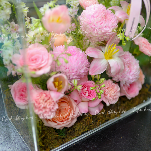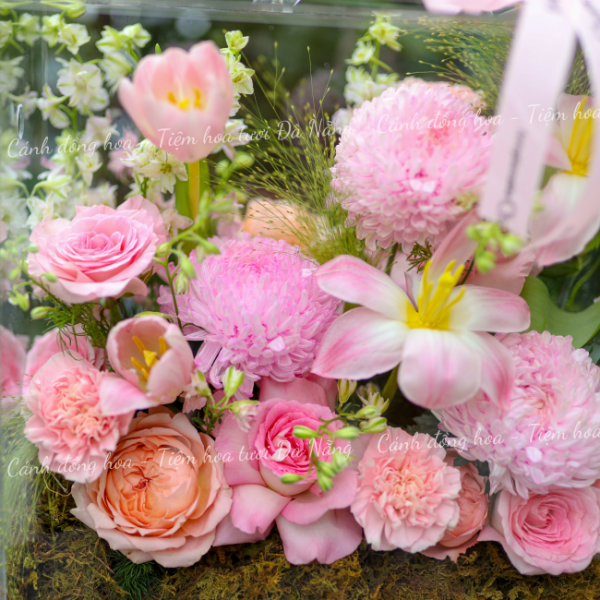 Hương thơm dịu nhẹ từ các loại hoa sẽ lan tỏa khắp không gian, mang đến cảm giác thoải mái và dễ chịu. Được trang trí bằng những lá xanh mướt và nơ lụa tinh tế, hộp hoa không chỉ là món quà tuyệt vời cho những dịp đặc biệt mà còn là điểm nhấn sinh động cho bất kỳ không gian nào.