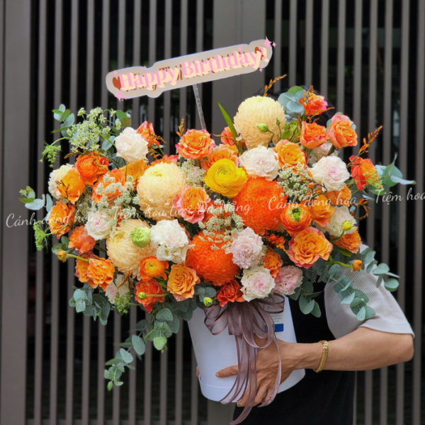 “Sắc Hè Tươi Mát” là một giỏ hoa mang đến một làn gió mới mẻ, tươi sáng với sự kết hợp hài hòa của những sắc màu rực rỡ, từ những cánh hoa cam, vàng. Những bông hoa tươi thắm được phối hợp tinh tế, tạo nên một tổng thể sống động, đầy sức sống. Mùi thơm dịu nhẹ của các loài hoa cùng sắc màu tươi mát như đưa người xem vào không gian mùa hè tràn đầy năng lượng và niềm vui. Giỏ hoa này không chỉ là món quà tuyệt vời cho những dịp đặc biệt mà còn là một lựa chọn hoàn hảo để làm mới không gian sống, mang lại cảm giác thư giãn, nhẹ nhàng và tràn đầy sức sống.