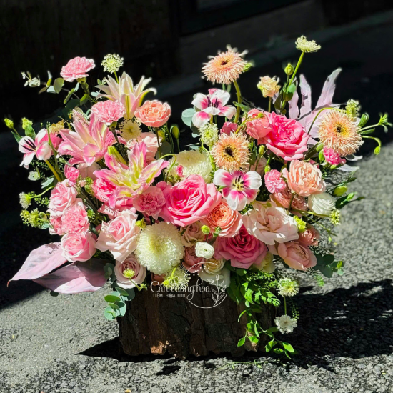 ộp hoa Garden màu hồng mang vẻ đẹp nhẹ nhàng và tinh tế, được phối từ những tông hồng pastel chủ đạo, điểm thêm sắc lá xanh mềm mại tạo cảm giác trong trẻo và thanh lịch. Mỗi cánh hoa đều được chọn lọc kỹ, cắm theo phong cách Garden hiện đại, phù hợp làm quà tặng sinh nhật, kỷ niệm, chúc mừng, hoặc gửi gắm lời yêu thương một cách tinh tế.