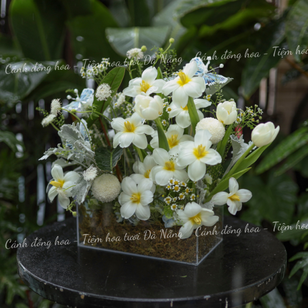 – Sản phẩm quý khách đặt có thể thay đổi đôi chút do cảm nhận về màu sắc, hoa tươi phụ thuộc theo mùa, khí hậu và điều kiện từng địa phương nơi chuyển đến. Trong điều kiện không có sẵn hoa theo mẫu khách hàng chọn, Tiệm sẽ chủ động liên lạc với khách hàng để thông báo và tư vấn hoa thay thế. Trường hợp không đủ thời gian hoặc không liên lạc được, Tiệm sẽ chủ động thay thế loại hoa khác có ý nghĩa và màu sắc theo mẫu.